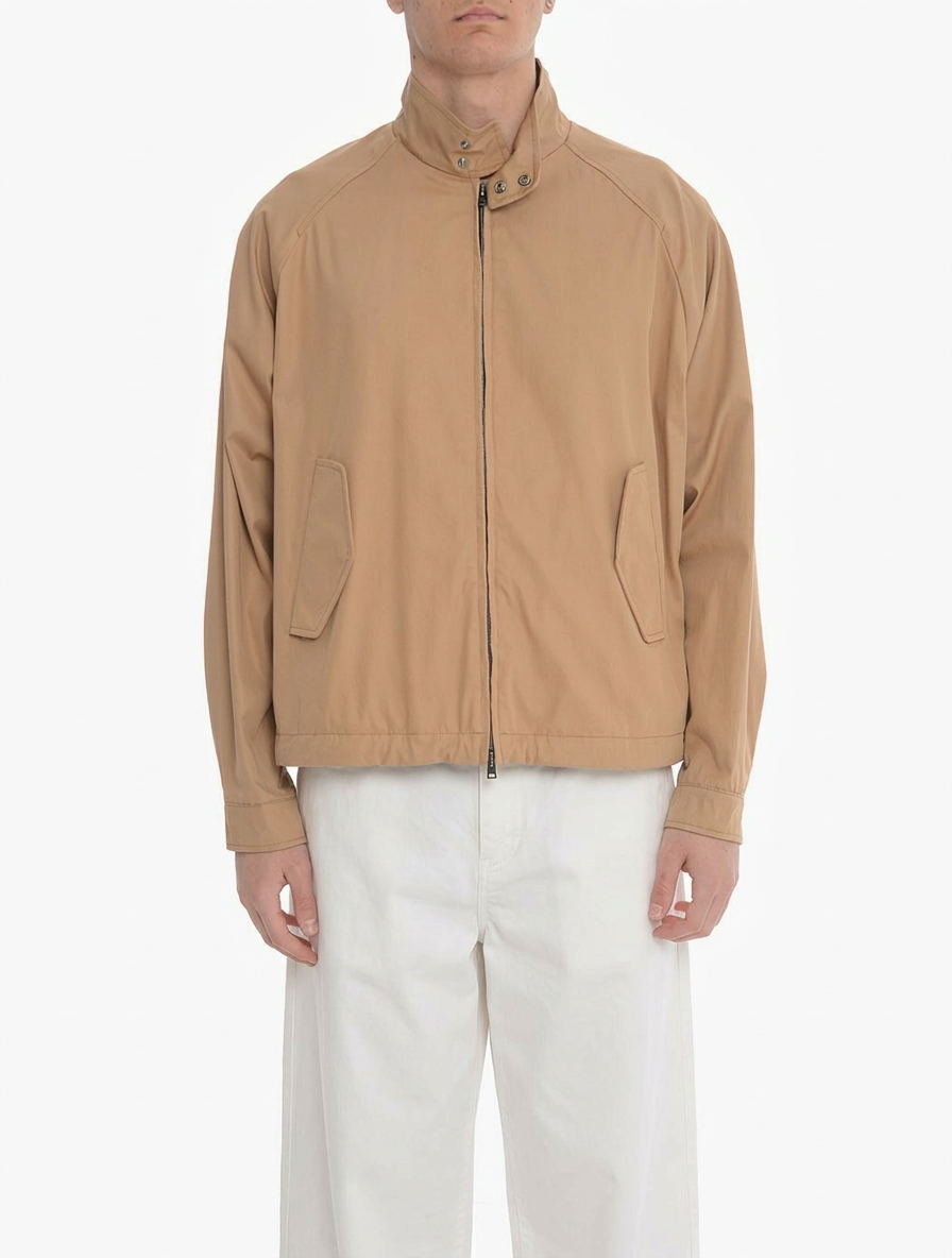 Water-repellent gabardine cotton Herno bomber jacket with high-neck, side welt pockets with flap, elasticated bottom, cuffs with flap and snap buttons, metallic logo embroidered on the back and front zip fastening. The model wears size 46. Composition: 100% cotton.