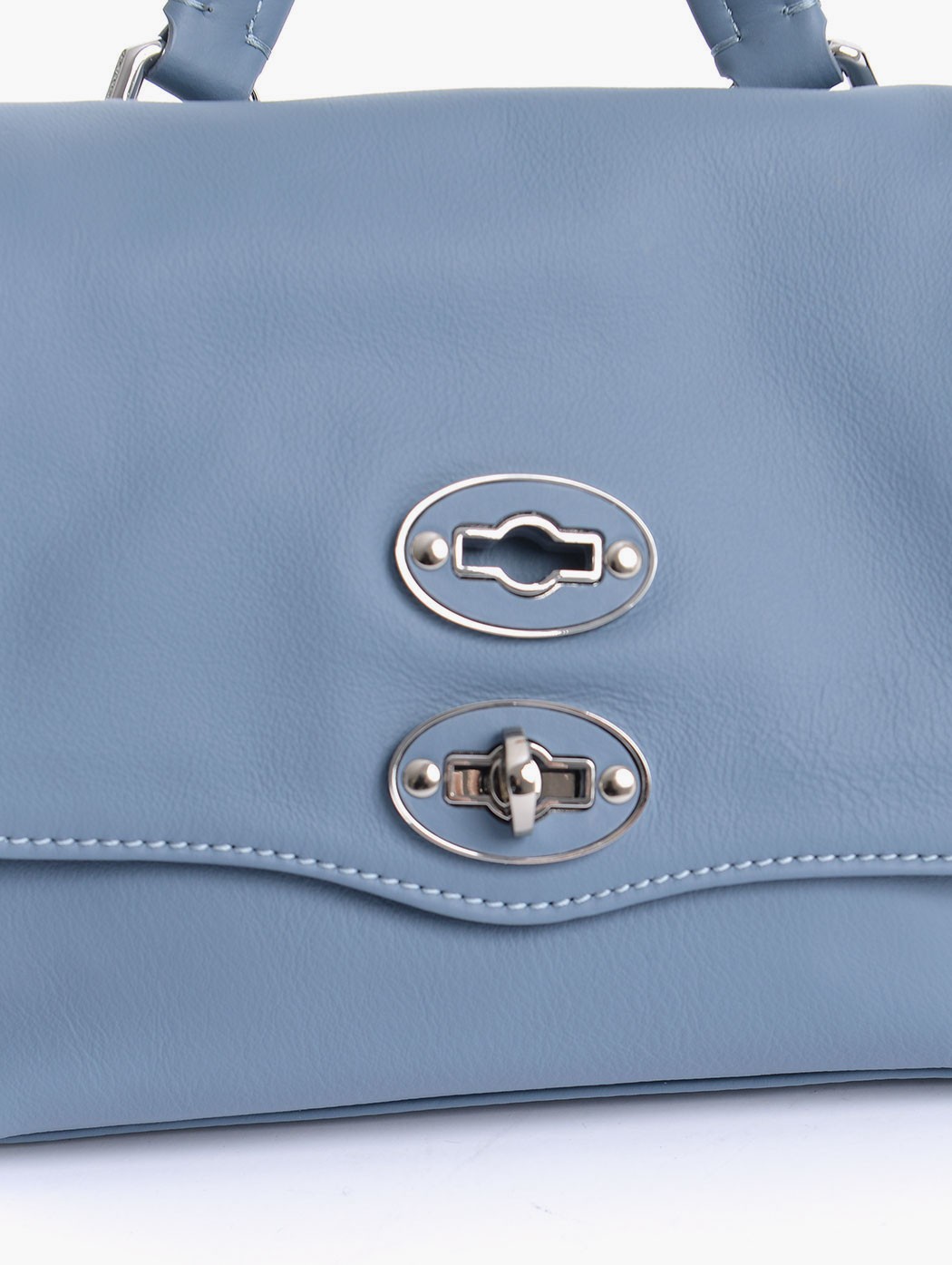 Borsa “Postina Baby” Zanellato in pelle liscia con doppia fibbia twist-lock, manico in pelle, applicazioni di rivetti laterali metallici, interno a unico scomparto con tasca ed etichetta in pelle ricucita con logo. Si può portare a mano e a spalla con doppia tracolla allungabile e staccabile. Made in Italy. Dimensioni: larghezza 19 cm, profondità 11 cm, altezza 11 cm. Composizione: 100% pelle.