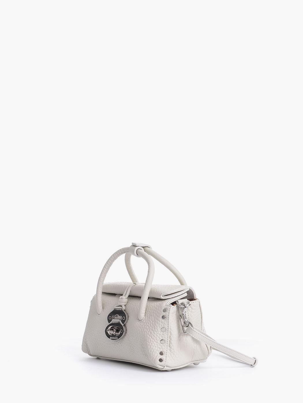 Borsa “Dotta Baby” Zanellato in pelle con chiusura roll-up e doppia fibbia twist-lock, doppio manico in pelle, applicazioni di rivetti laterali metallici, interno a due scomparti con etichetta in pelle ricucita con logo. Si può portare a mano e a spalla con doppia tracolla allungabile e staccabile. Made in Italy. Dimensioni: larghezza 23 cm, profondità 12 cm, altezza 11 cm. Composizione: 100% pelle.