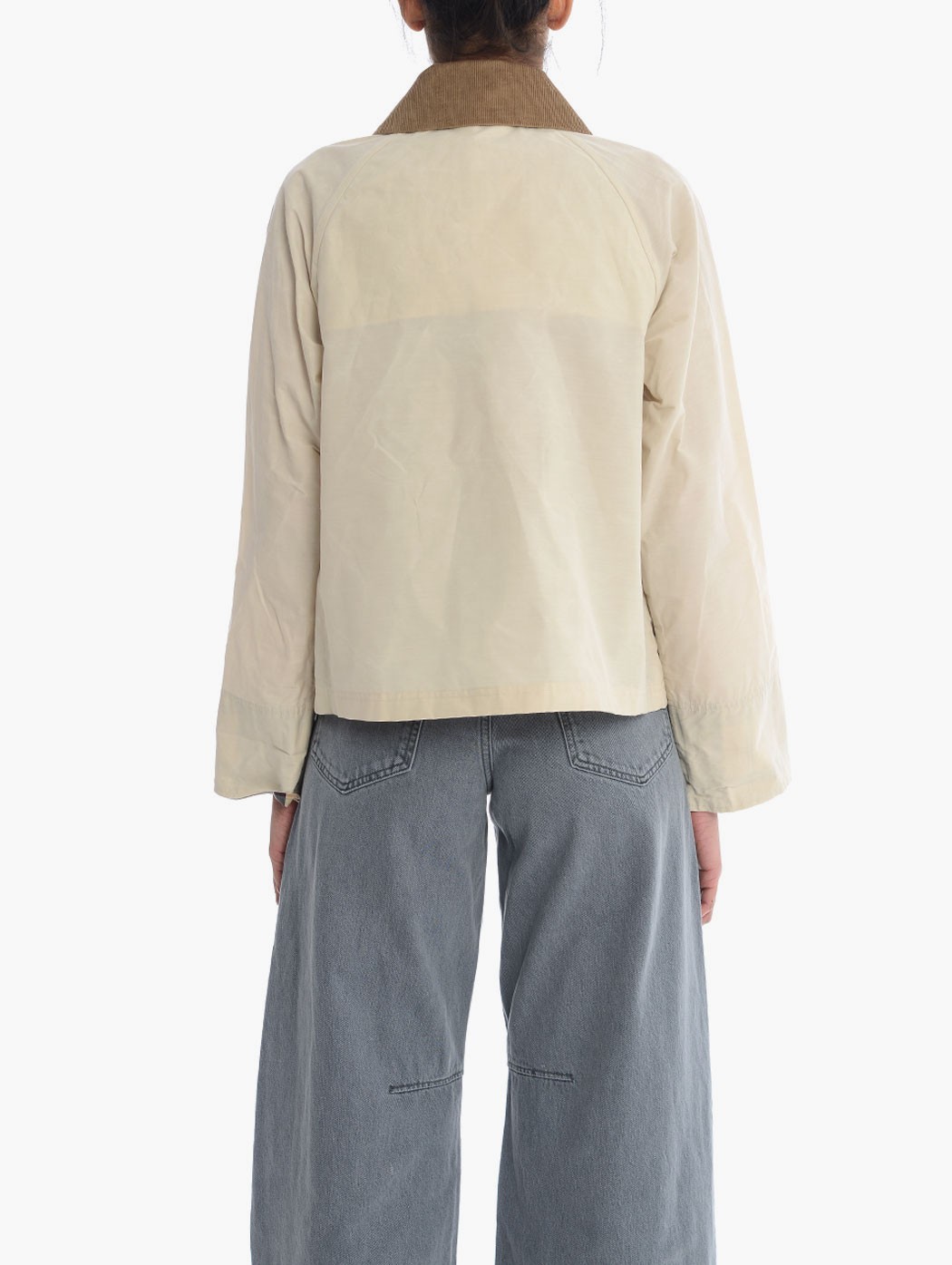 Barbour ‘Icon Spey Showerproof’ con collo in velluto a coste, tasche con bottoni e patta sul fronte e logo ricucito, fodera in classica stampa tartan e chiusura con zip sul fronte. La modella indossa una taglia 38. Composizione: 70% cotone, 30% poliammide.