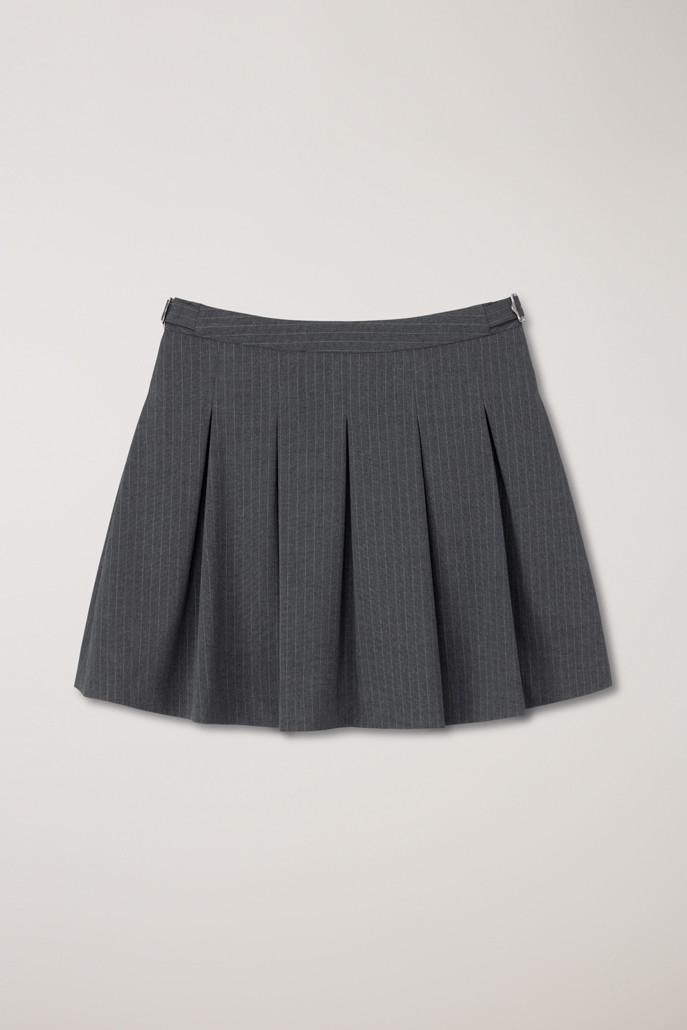 Gonna Dunst gessata con pieghe su fronte e retro, fibbia in vita su entrambi i lati e chiusura con zip sul retro. La modella indossa una taglia XS. Composizione: 79% poliestere, 21% rayon.