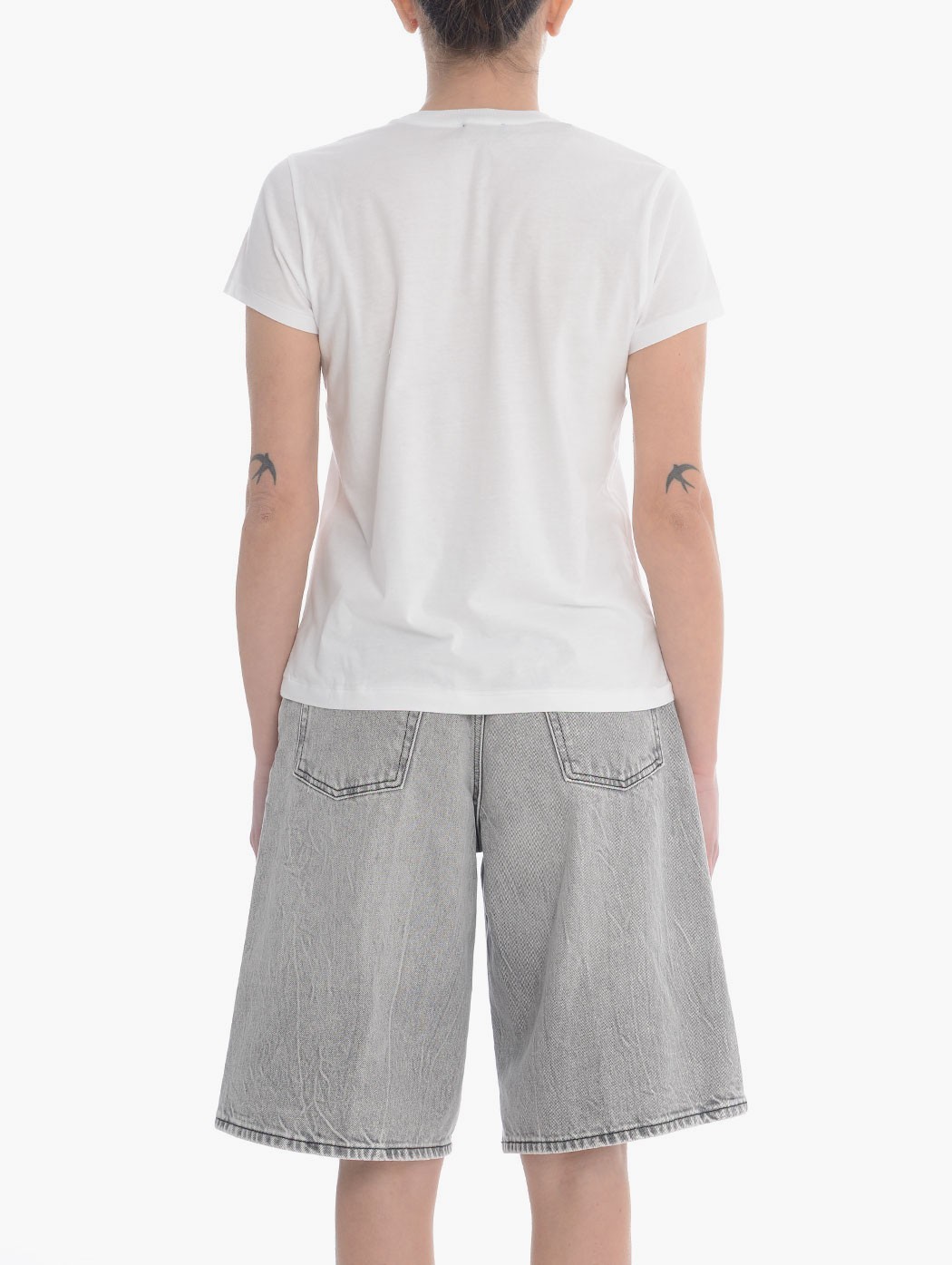T-shirt girogola Polo Ralph Lauren in jersey di cotone con logo ricucito a contrasto sul fronte. La modella indossa una taglia M. Composizione: 100% cotone.